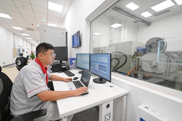 9月14日,在中汽中心新能源汽车科技创新基地电驱电控部,工作人员进行电动汽车用高性能电驱动总成测试。新华社记者 孙凡越 摄