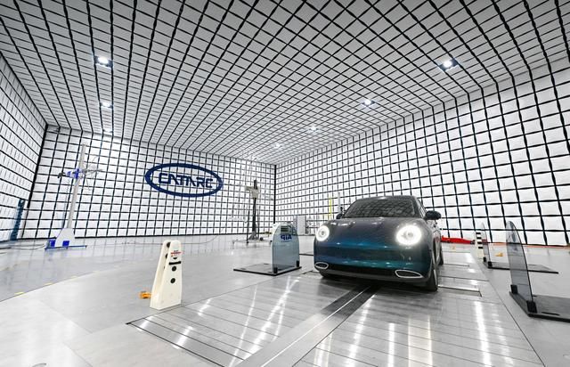 9月14日,在中汽中心新能源汽车科技创新基地电磁兼容部,新能源乘用车在接受电磁辐射水平测试。新华社记者 孙凡越 摄